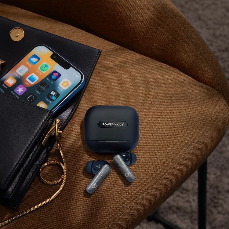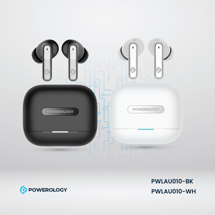 Powerology Hybrid True Wireless Earbuds with ANC + ENC, 6 Microphone, Bluetooth Version 5.3 & Type-C Charging Port - Black