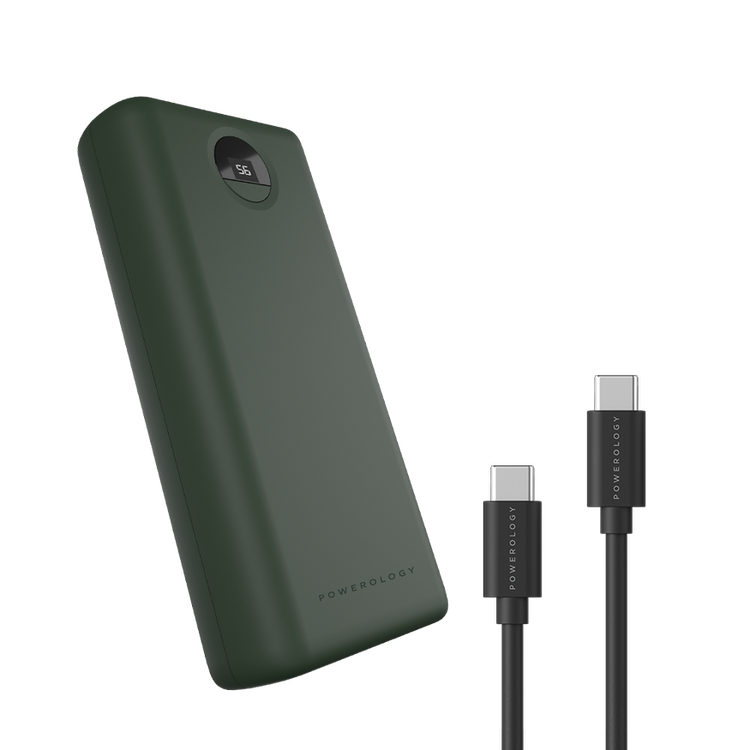 Powerology Quick Charge Power Bank 30000mAh PD 45W with Type-C to Type-C Cable 0.9m, Super Compact, USB-C Input & Output, 2 USB-A Output, Fast Charging, Digital Display Indicator - Green