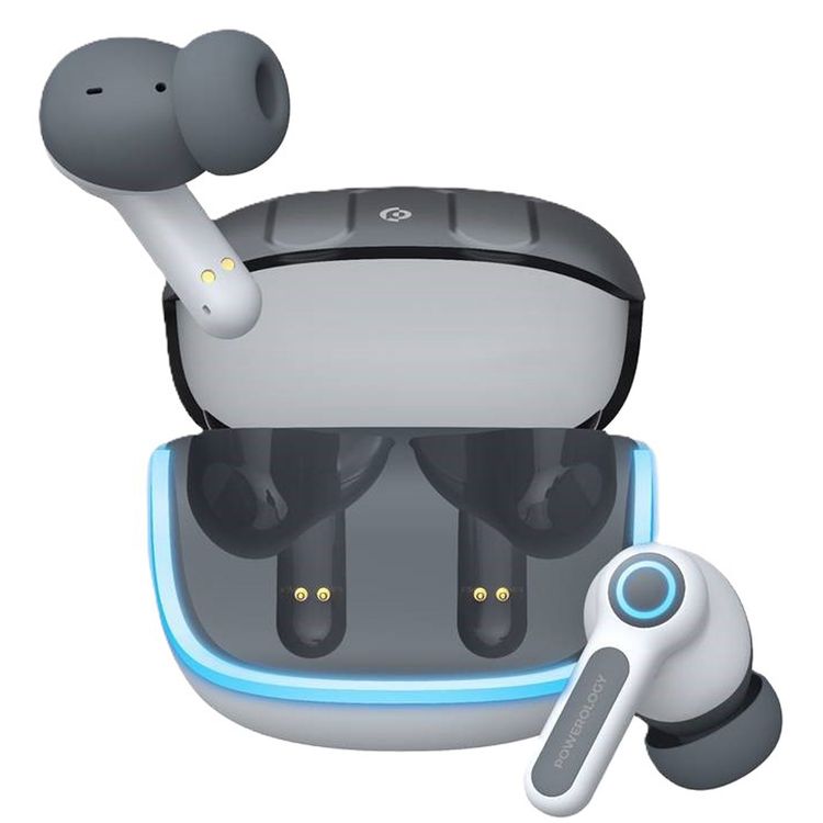 Powerology Quad Mic ENC True Wireless Earbuds, 6h Playtime, Bluetooth 5.3, Type-C Charging, 10m Transmission Distance, RGB Lights - White