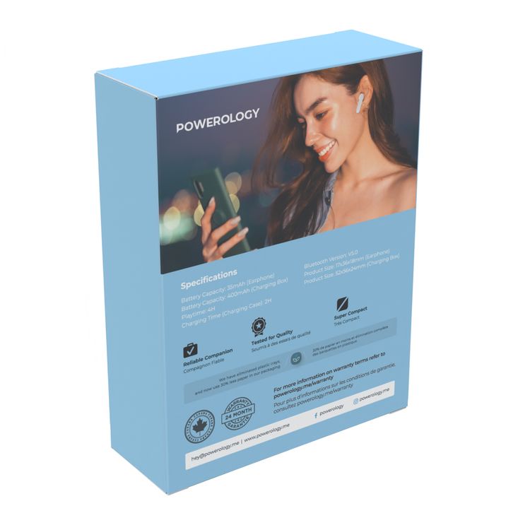 Powerology Stereo Buds Plus is compatible with Bluetooth version 5.1 which can be easily paired to your smartphones. Not only on smartphones but also on other devices which support Bluetooth like iPods or even connect them to your PC or Laptop with Bluetooth connection ability. It is also can be paired with Siri on your iPhone and also it has an intelligent touch control ability which means by this opportunity you can go to the next or previous song, answer, close, and reject calls.
