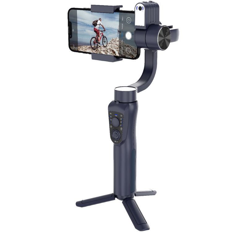 Porodo 3-Axis AI Tracker & Light Gimbal Stabilizer with Built-In Tripod, Object Tracking, Power Bank Function, 210 Minuets Charging Time - Black