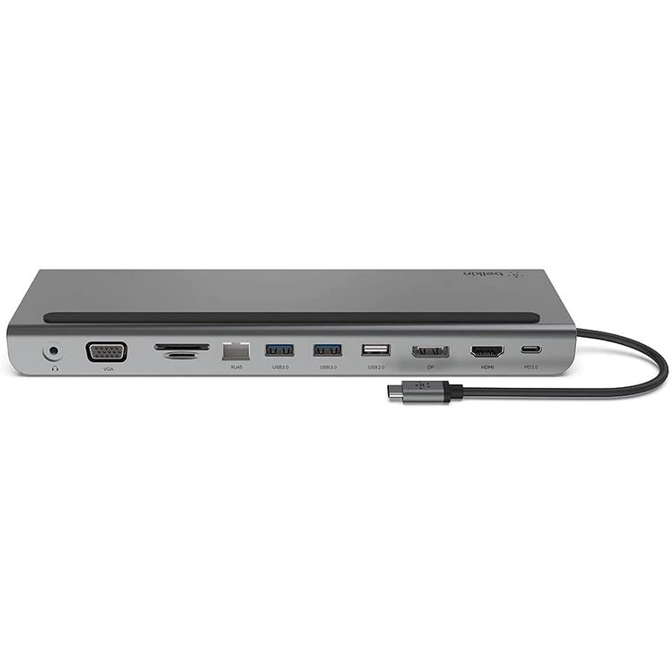 USB-C Multiport Belkin INC004btSGY USB-C Multiport Docking Station-Grey Turn your USB-C laptop into the ultimate workstation with our USB-C 11-in-1 Multiport Dock. This all-in-one solution gives you access to ports that newer laptops have eliminated in the recent years, allowing you to connect to monitors, SD cards, thumb drives, and more through its USB-C port. It supports pass-through charging up to 100W so you don’t have to choose between port expansion and power. This docking station gives you up to 5 Gbps of bandwidth between connected devices and your laptop while supporting high-definition display resolutions up to 4K through HDMI, DisplayPort, and VGA video ports. Plus, with its Gigabit Ethernet port, you’ll always have a safe and secure internet connection.