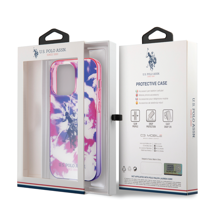 USPA PC/TPU IML Case With Dye Palm Design & Horse Logo For iPhone 14 Pro - Purple