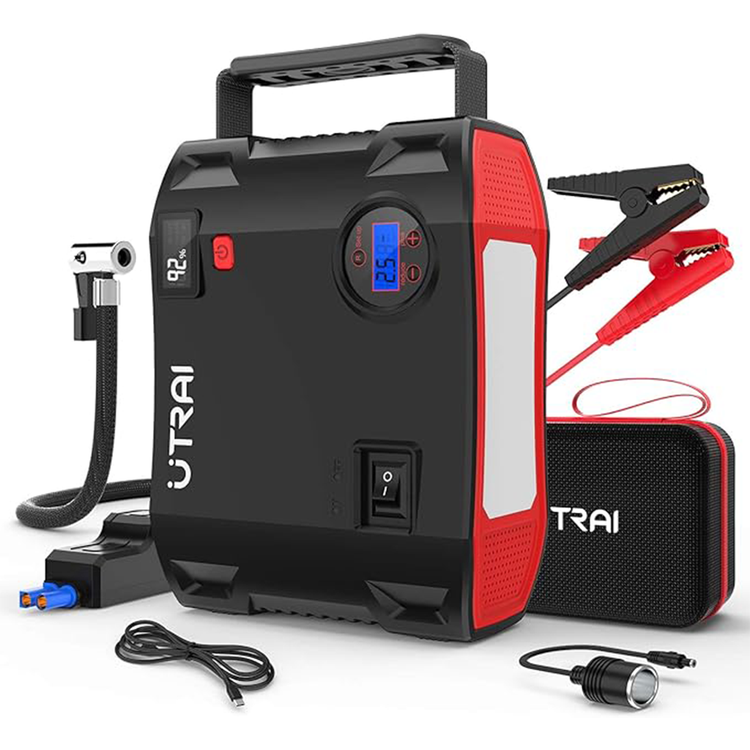 UTRAI Jstar 5 Portable Jump Starter & Air Compressor, 2000A 24000mAh, 150 PSI, 12V Battery Pack for 8L Gas & 7.5L Diesel Engines, Emergency Light, LCD Screen, USB QC3.0 - Black