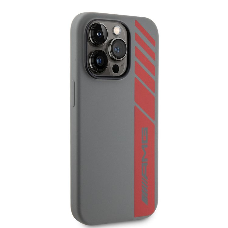 حافظة AMG MagSafe من السيليكون مع نمط شعار AMG عمودي لسلسلة iPhone 15 - رمادي - iPhone 15 Pro Max