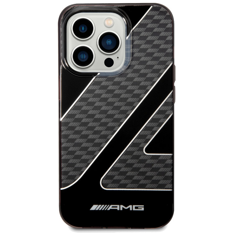 AMG Transparent Double Layer Case with Checkered Flag Pattern Crystal Case iPhone 14 Pro Max Compatibility - Black