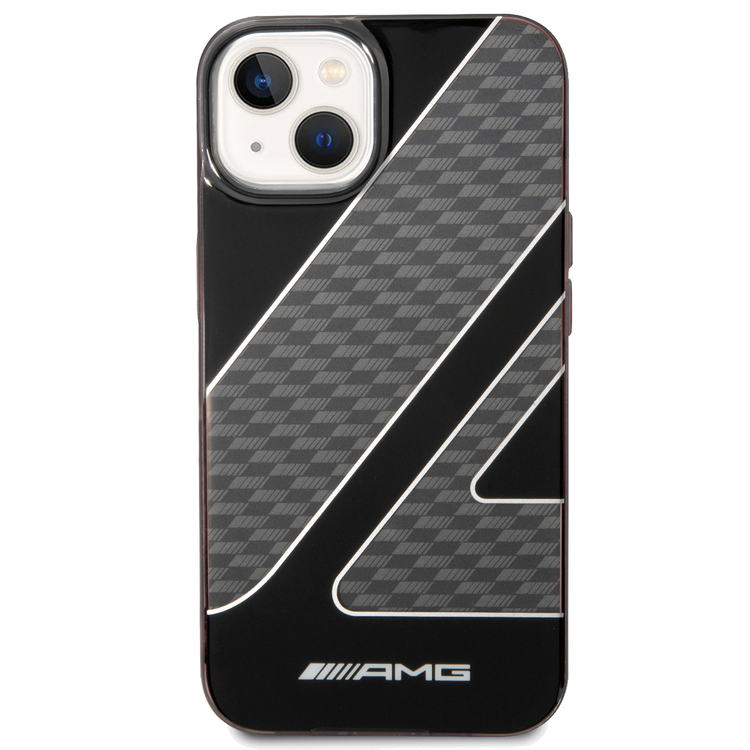 AMG Transparent Double Layer Case with Checkered Flag Pattern Crystal Case iPhone 14 Compatibility - Black