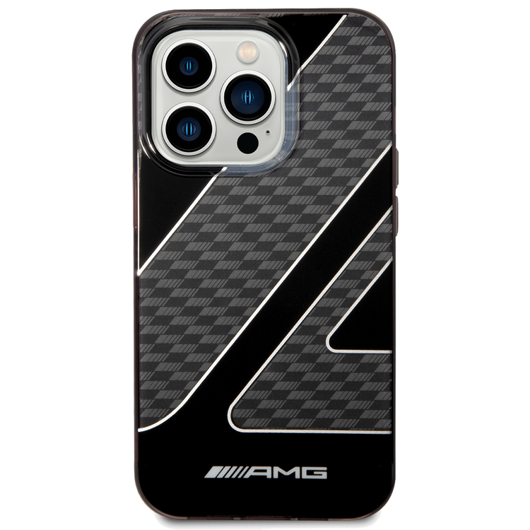 AMG Transparent Double Layer Case with Checkered Flag Pattern Crystal Case iPhone 14 Pro Compatibility - Black