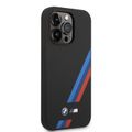BMW M Collection Liquid Silicone Case with Slanted Tricolor Stripes PU iPhone 14 Pro Max Compatibility - Black