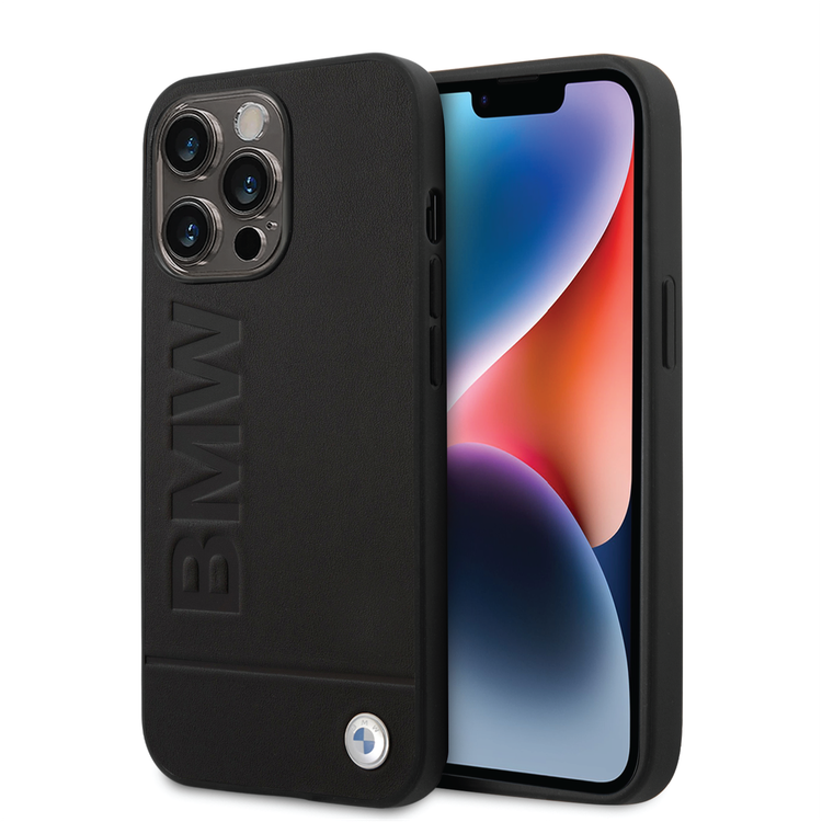 BMW Magsafe Real Leather Hard Case with Hot Stamp and Metal Logo iPhone 14 Pro Compatibility - Black