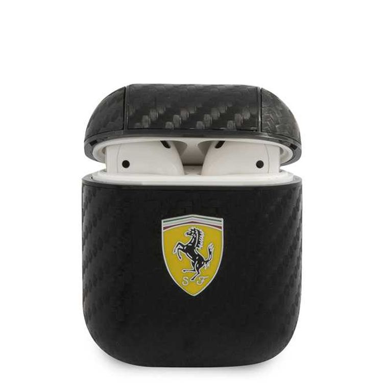 CG Mobile Ferrari PC PU Carbon Yellow Shield Metal Logo Case متوافق مع Airpods 1/2 - أسود
