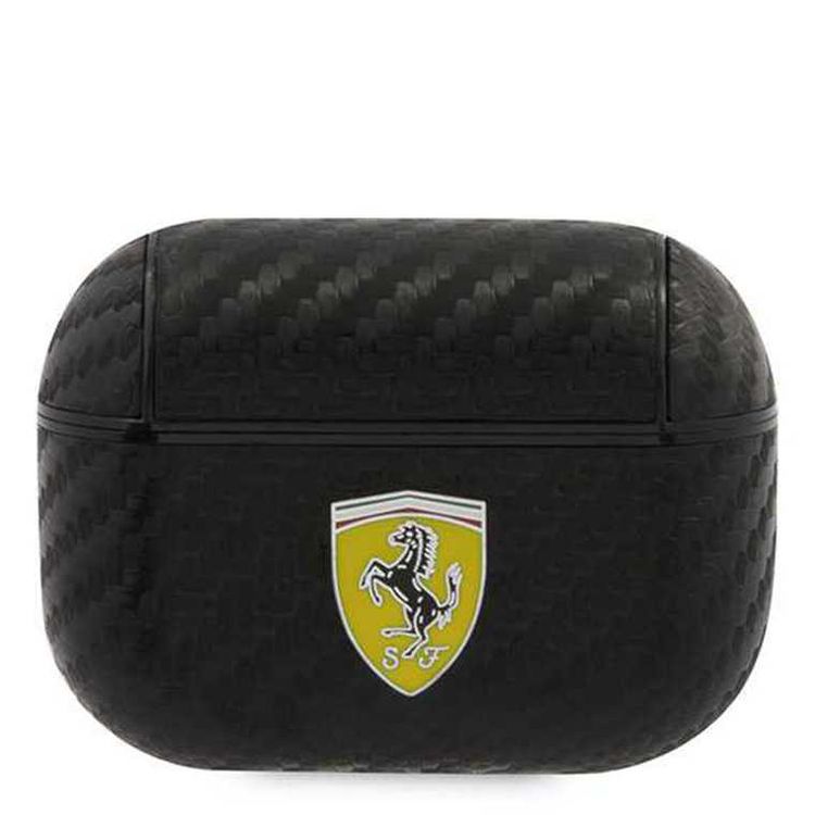 سي جي موبايل جراب فيراري من مادة بولي كربونات وبولي يوريثان بشعار الكربون الأصفر درع معدني متوافق مع ايربودز برو ، مقاوم للخدش ، ممتص للصدمات ، حماية من السقوط ، وغطاء سيليكون واقٍ من الغبار مرخص رسميًا - أسود