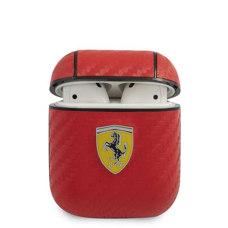 CG Mobile Ferrari PC PU Carbon Yellow Shield Metal Logo Case متوافق مع Airpods 1/2 - أحمر