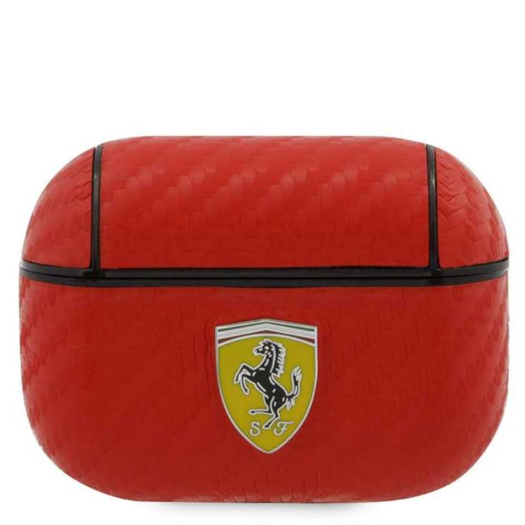 سي جي موبايل جراب فيراري من مادة بولي كربونات وبولي يوريثان بشعار الكربون الأصفر درع معدني متوافق مع ايربودز برو ، مقاوم للخدش ، ممتص للصدمات ، حماية من السقوط ، وغطاء سيليكون واقٍ من الغبار مرخص رسميًا - احمر