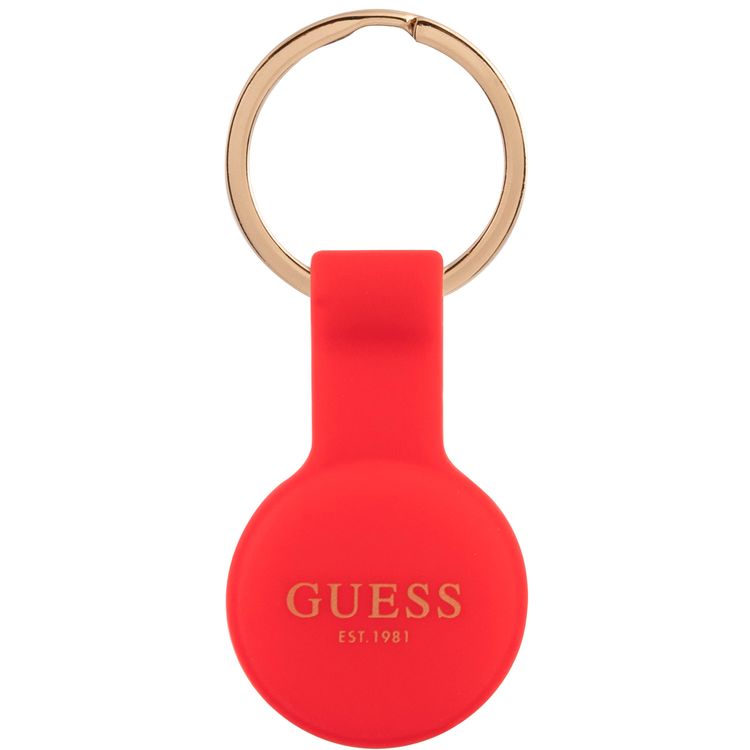 CG MOBILE Guess Silicone Classic Logo Case with Keychain Compatible for Airtag, Portable Protective Skin Cover, Anti-Lost Holder with Key Ring Suitable for AirTag Bluetooth Tracker, Easy to Attach Keys, Backpacks, Liner Bags Officially Licensed - White Red