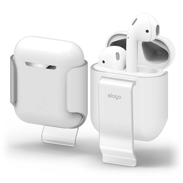 إيلاجو مشبك حزام ايربودز متوافق مع أجهزة ابل ايربودز 1 و 2 ، مشبك حمل ، مقاوم للصدمات ، مقاوم للكسر ، ابيض
