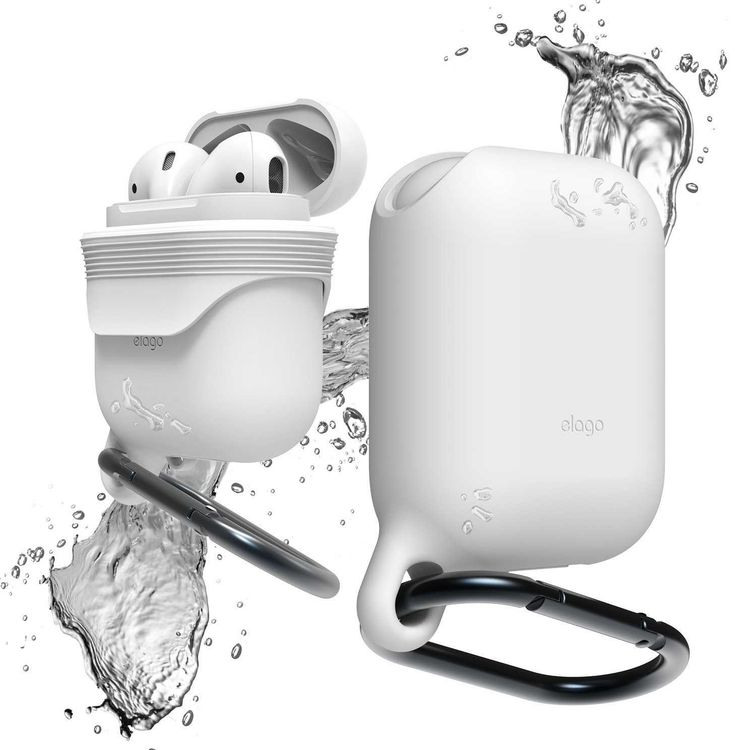 إيلاجو جراب مضاد للماء لجيل ابل ايربودز 1 و 2 ، يصل إلى 1 متر (3.3 قدم) ، يُشحن عن طريق فتح الغطاء السفلي ، طبقات من الحماية ، غطاء واقي مقاوم للأتربة والماء مع جراب تعليق لسماعات ابل ايربودز 1/2 ، أسود