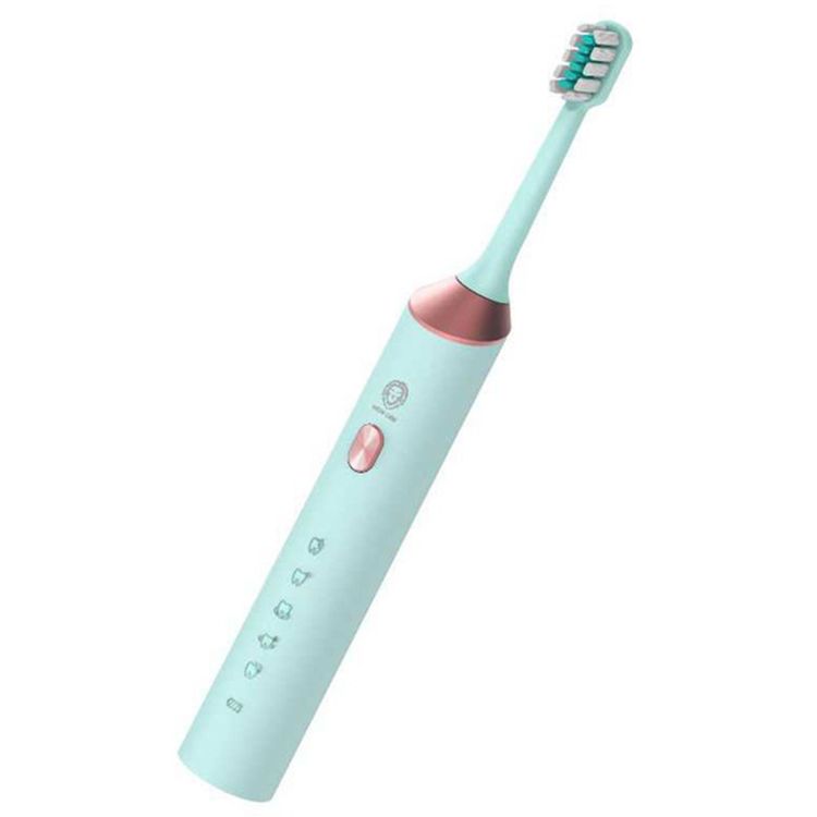 فرشاة أسنان كهربائية خضراء مع 4 رؤوس فرشاة، مناسبة للأسنان الحساسة والمبقعة، مؤقت ذكي لمدة دقيقتين، 5 أوضاع تنظيف، تصميم نحيف - أزرق