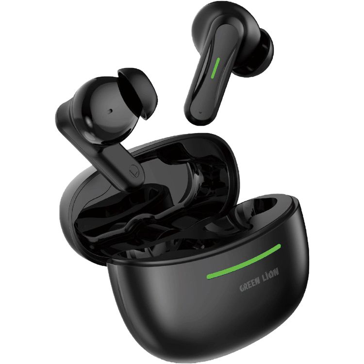 سماعات أذن لاسلكية من Green Lion Cairo بتقنية ENC وTWS، مكالمات بدون استخدام اليدين، شاشة لمس متعددة الوظائف، وقت تشغيل يصل إلى 4 ساعات، منفذ شحن من النوع C - أسود