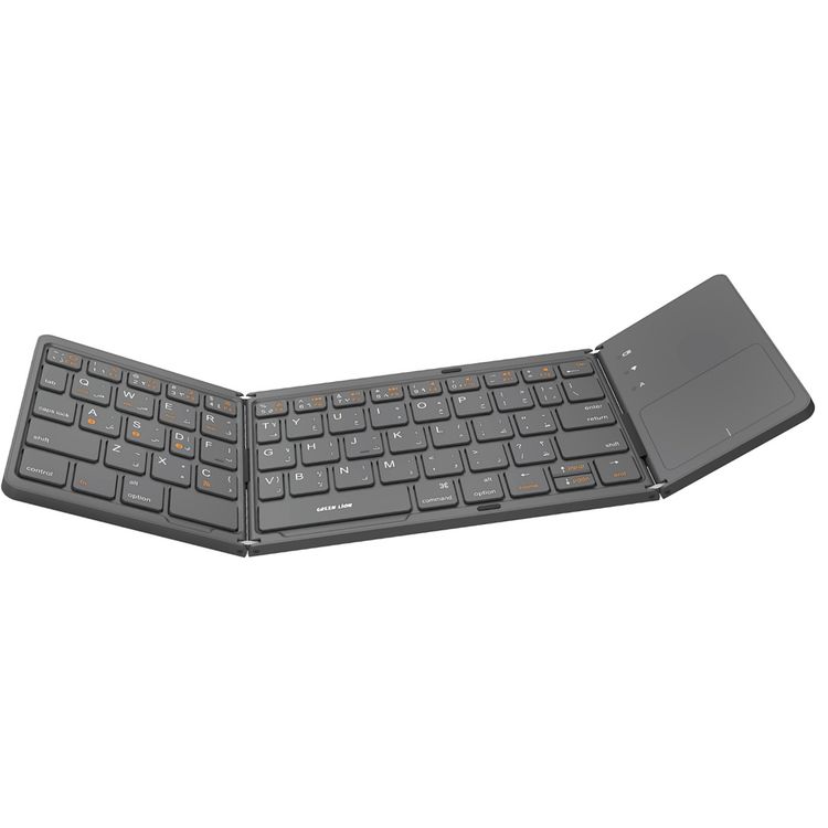 لوحة مفاتيح بلوتوث قابلة للطي من Green Lion، سعة بطارية 180 مللي أمبير في الساعة، وقت عمل 20-30 يومًا، كتابة مريحة وهادئة، عمر تشغيل يصل إلى 5 ملايين مرة، مسافة عمل 10 أمتار، وقت نوم 10 دقائق، منفذ شحن من النوع C - رمادي