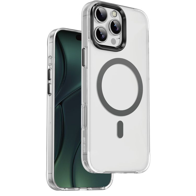 حافظة Green Lion Matte MagSafe لآيفون 16 برو، تصميم حماية الكاميرا، تشطيب لامع معدني، أزرار مستقلة - باللون التيتانيوم الأسود
