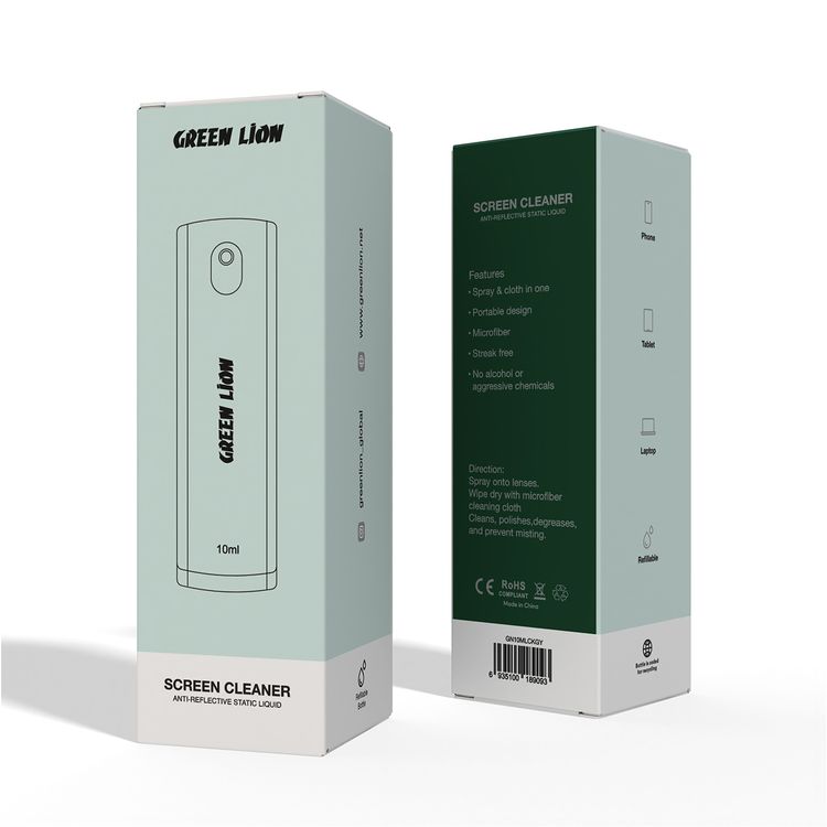 منظف الشاشة جرين ليون، بخاخ وقطعة قماش في واحد، تصميم محمول، قابل لإعادة التعبئة، خالٍ من الخطوط - أزرق