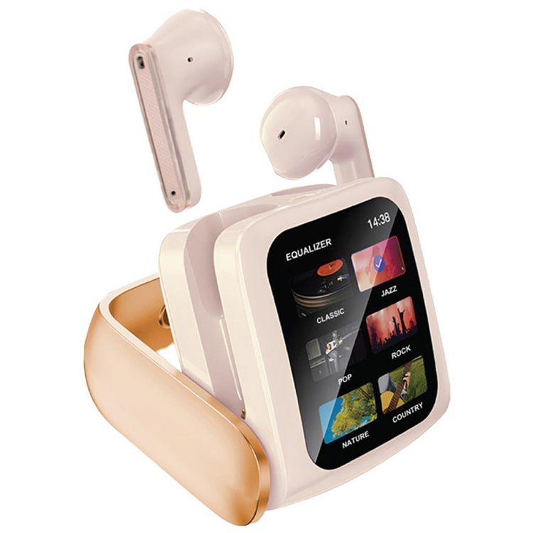 سماعات أذن Green Lion الذكية، متعددة الوظائف تعمل باللمس، مع خاصية إلغاء الضوضاء البيئية - بيج