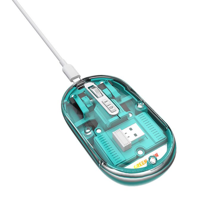 ماوس Green Lion الشفاف غير المرئي المزود بميزة النقر الخفيف، مصنوع من مادة بلاستيك ABS، مزود بميزة النقر غير المرئي - أخضر