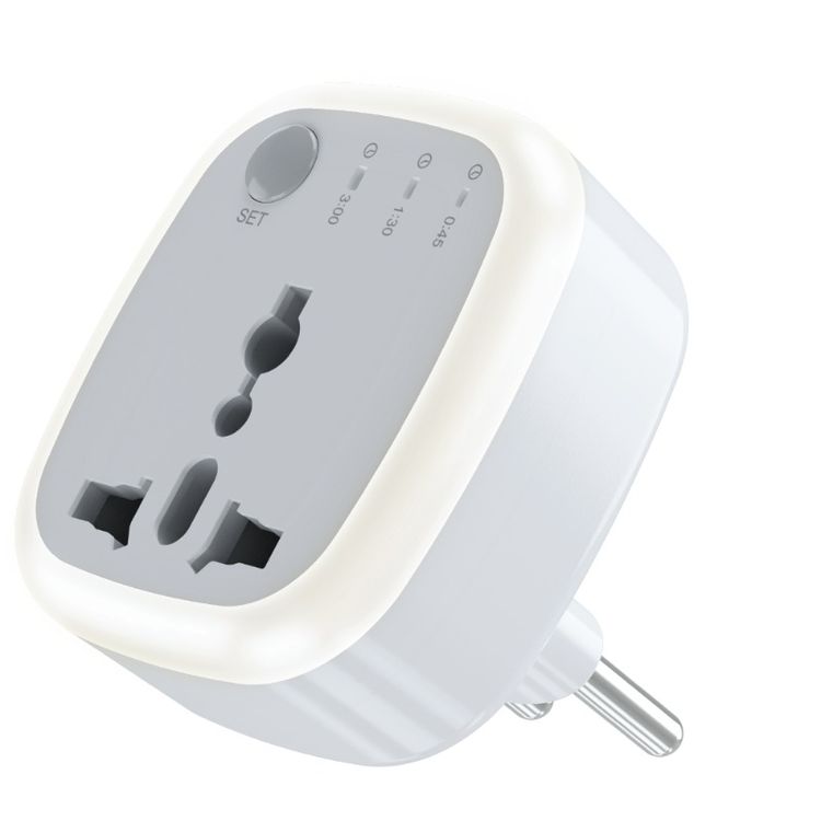 قابس تحويل عالمي من Green Lion، 3 أوضاع مؤقتة، توافق عالمي، 2450 واط، 10 أمبير، إضاءة LED، حماية من ماس كهربائي - أبيض