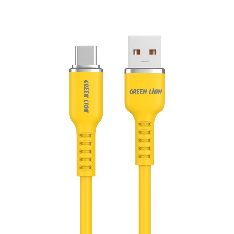 كابل سيليكون USB-A إلى USB-C بطول 1 متر من Green Lion، سرعة نقل 480 ميجابت في الثانية، 15 وات، شحن ومزامنة، عمر افتراضي يزيد عن 10000 ثنية، آمن ومضمون - أصفر