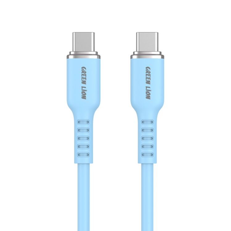 كابل سيليكون USB-C إلى USB-C بطول 1 متر من Green Lion، سرعة نقل 480 ميجابت في الثانية، 60 وات، شحن ومزامنة، عمر افتراضي يزيد عن 10000 ثنية، آمن ومضمون - أزرق