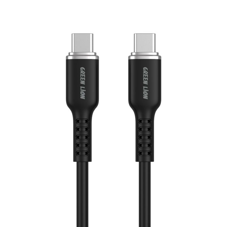كابل سيليكون USB-C إلى USB-C بطول 1 متر من Green Lion، سرعة نقل 480 ميجابت في الثانية، 60 وات، شحن ومزامنة، عمر افتراضي يزيد عن 10000 ثنية، آمن ومضمون - أسود