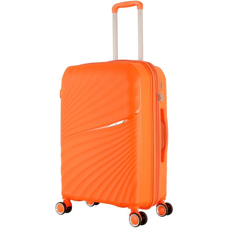 حقيبة أمتعة H.T، حافظة صلبة من مادة البولي بروبيلين (PP)، قابلة للتمدد، مقبض تلسكوبي، مقاومة للخدش، قفل TSA، حجم حقيبة متوسط - برتقالي