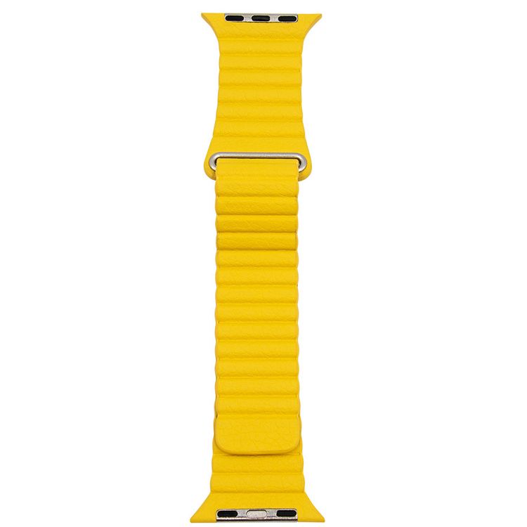 iGuard من بورودو سوار ساعة جلدي ، سوار معصم بديل ملائم ومريح ، أشرطة قابلة للتعديل متوافقة مع ساعة أبل - اصفر- 42/44 ملم