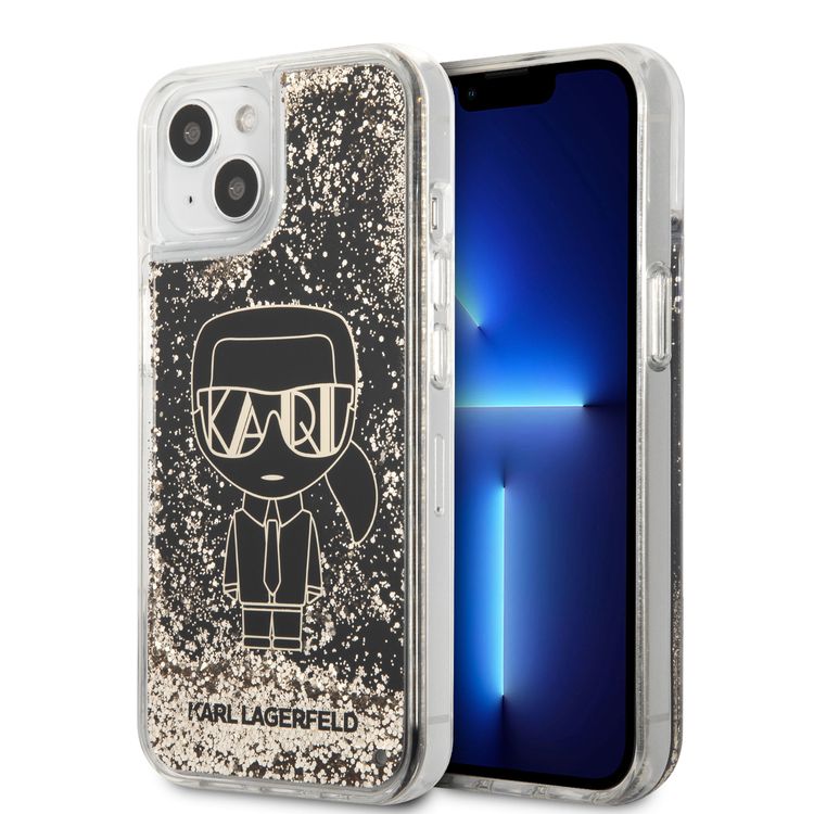 كارل لاغرفيلد جراب صلب لامع لامع جاتسبي أيكونيك لهاتف آيفون 14 - أسود