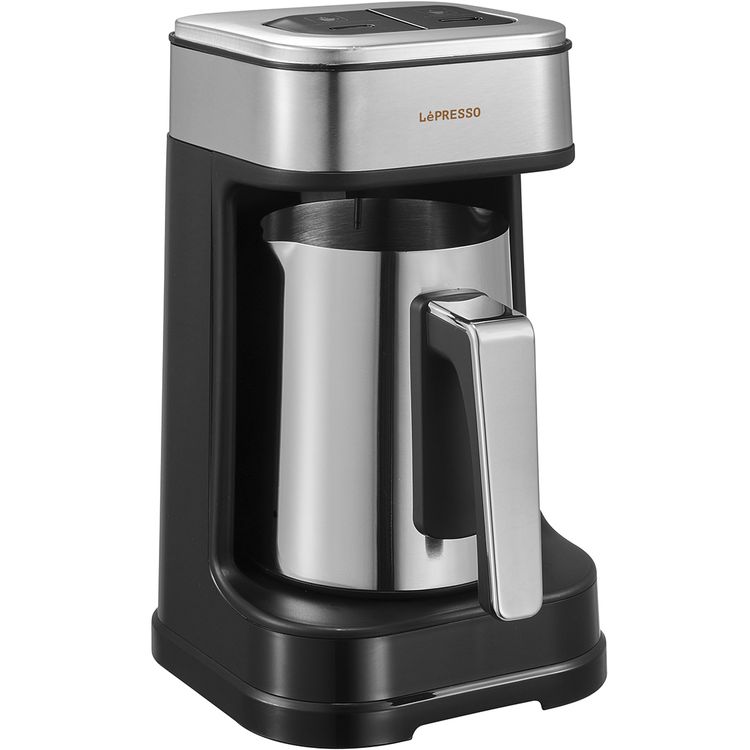 ماكينة صنع القهوة التركية بوضع مزدوج من LePresso بسعة 250 مل، مع كوب من الستانلس ستيل، وحماية من السخونة الزائدة، وحماية من الغليان الجاف، وتصميم حاصل على براءة اختراع، ومقاومة للانسكاب - باللون الأسود