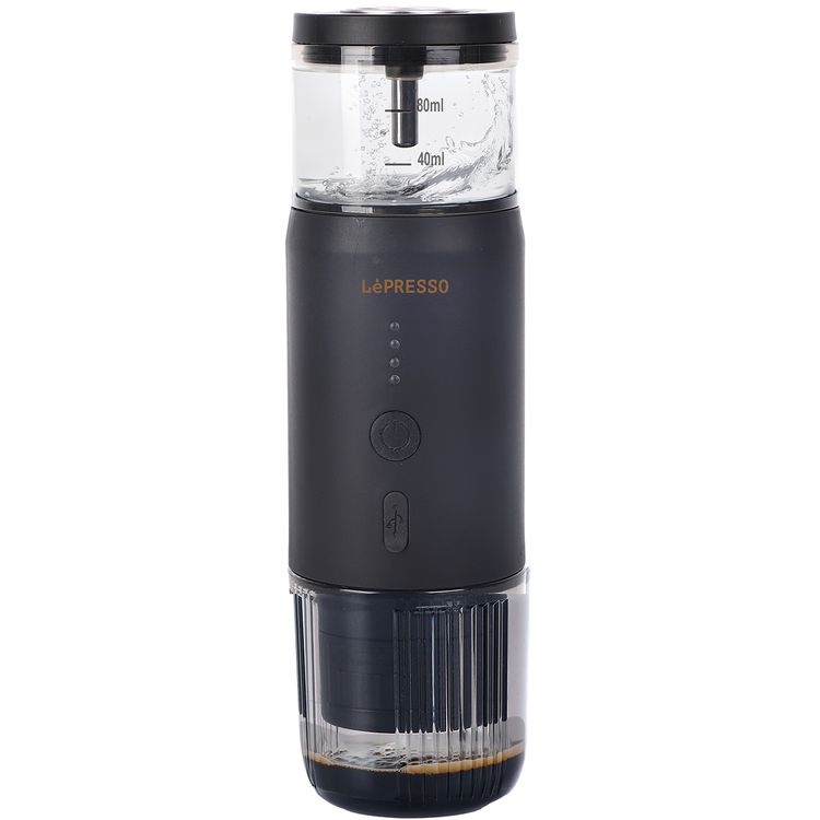 ماكينة صنع الإسبريسو المحمولة من LePresso، مصنوعة من الفولاذ المقاوم للصدأ بدرجة الغذاء، بسعة بطارية 2500 مللي أمبير في الساعة × 3، وسعة خزان مياه 80 مل - أسود