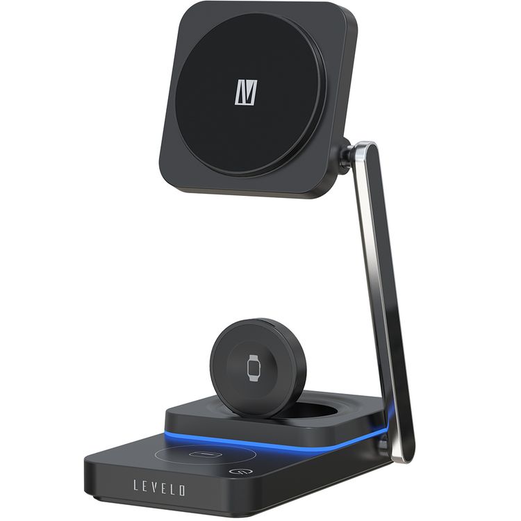شاحن لاسلكي ليفيلو أورورا 3 في 1 بقوة مغناطيسية قوية، يدور بزاوية 90°، شحن سريع بقوة 15 واط، اكتشاف تلقائي للأشياء، حماية من الشحن الزائد - أسود