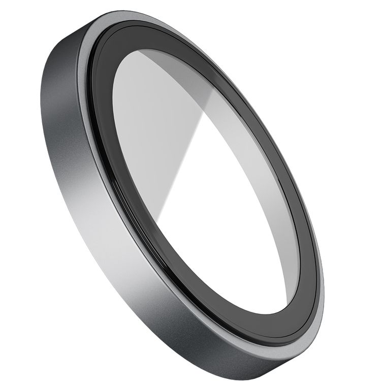 واقي عدسة Levelo Duo لهاتف iPhone 16/16 Plus، مضاد لبصمات الأصابع، مضاد للانعكاس على الوجهين، شفاف بنسبة 99%، مقاوم للانفجار، زجاج عدسة مزدوج الطبقة، مادة سبائك الألومنيوم - رمادي فاتح