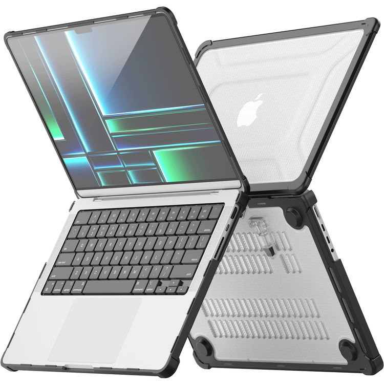 غطاء Levelo Espectro لجهاز ماك بوك برو 14" (2021-2023)، حماية كاملة 360°، تصميم بقاعدة قابلة للطي، فتحات تهوية مدمجة، حواف مقاومة للصدمات، تركيب وإزالة سهل - اللون الأسود.