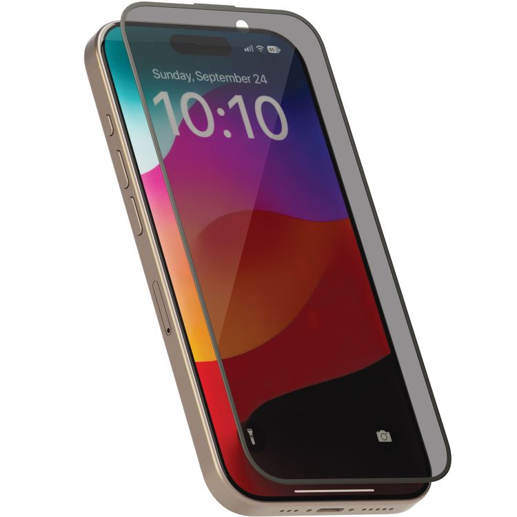 لاصق الحماية الكامل Levelo للشاشة الخصوصية بزجاج مُقَوّى مرتين لهاتف iPhone 15 Pro - باللون الأسود