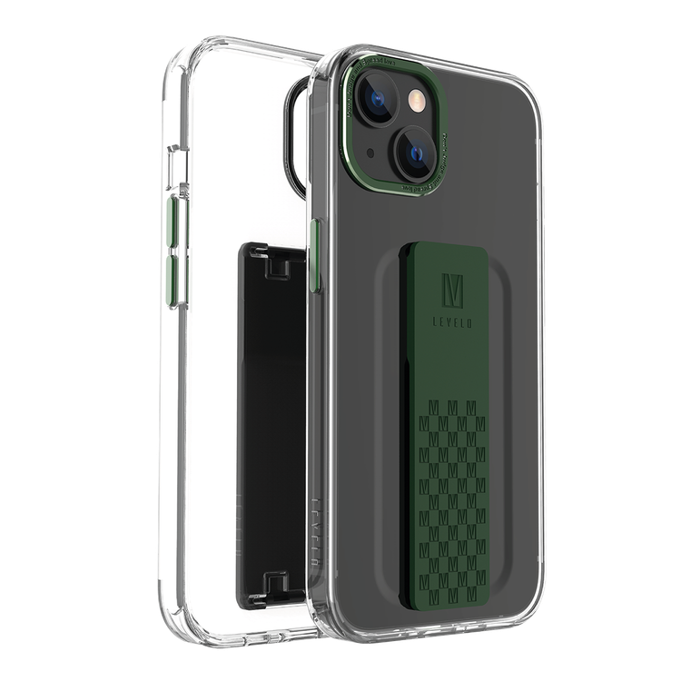 غطاء ليفيلو غرافيا IMD شفاف مع قبضة إضافية لهاتف آيفون 14 - أخضر