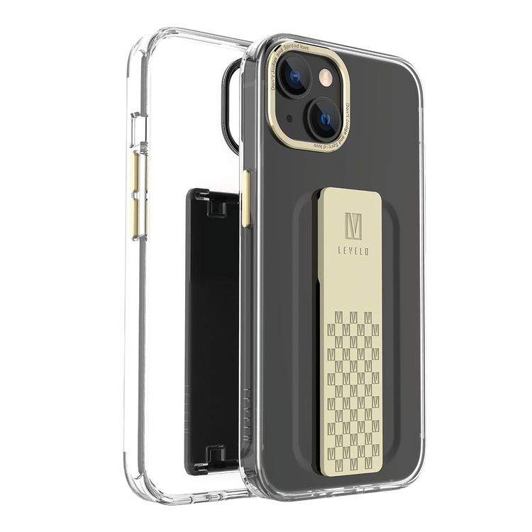 غطاء Levelo Graphia IMD الشفاف مع قبضة إضافية لهاتف آيفون 14 - شامبانيا