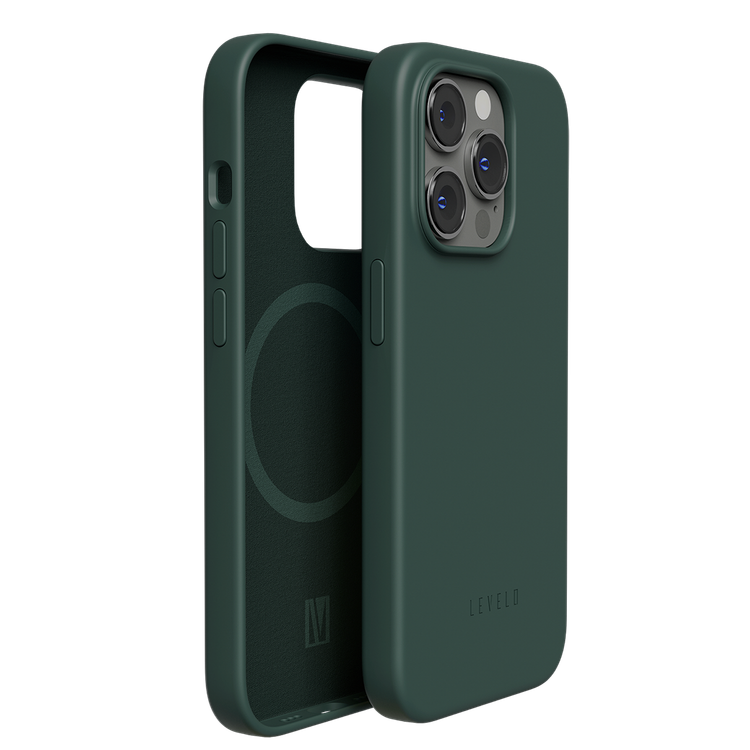 غطاء Levelo Iris Magsafe Compatibility Liquid Silicone لجهاز iPhone 14 Pro، متوافق مع Magsafe، حماية عدسة الكاميرا، حواف مقاومة للصدمات - لون أخضر داكن