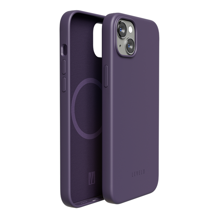 غطاء ليفلو آيريس سيليكون سائل متوافق مع تقنية ماغسيف لهاتف آيفون 14 بلس، متوافق مع ماغسيف، حماية للعدسة، حواف مقاومة للصدمات - بنفسجي