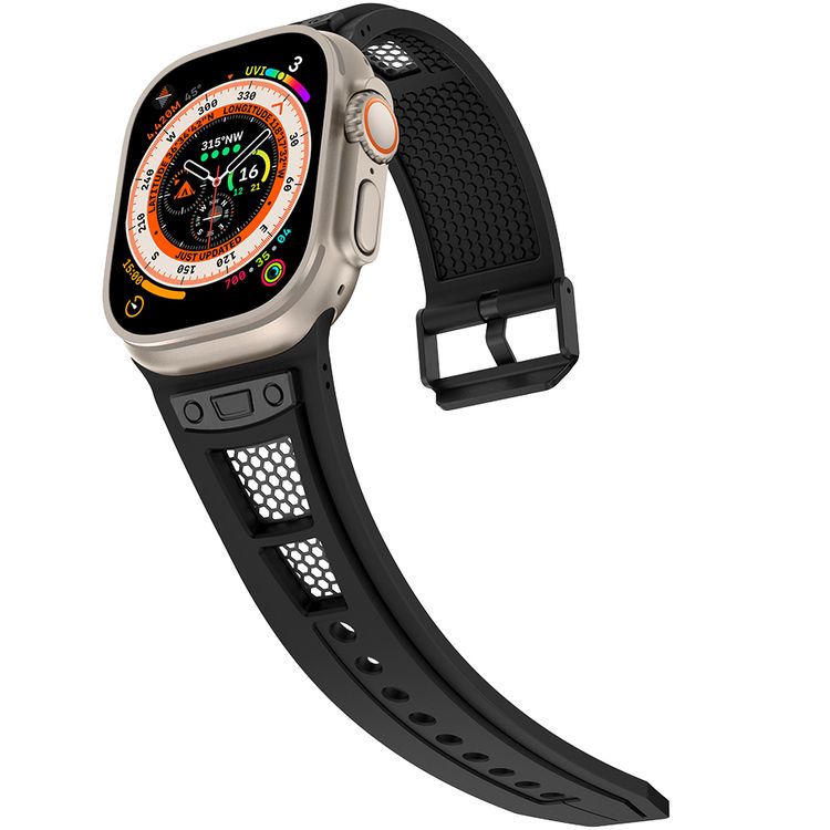 حزام ساعة Levelo Kai، متوافق مع ساعة آبل SE 9/8/7/6/5 (46/49 ملم)، مصنوع من TPU + مشبك معدني، مضاد للحساسية، للارتداء على مدار 24/7 - باللون الأسود الخفي