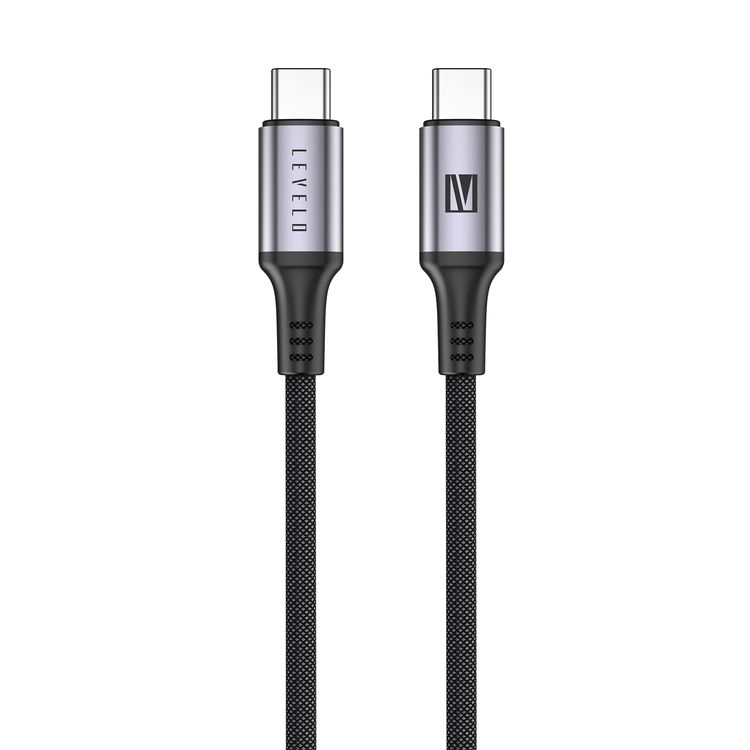 كابل جلدي من Levelo Otto USB-C إلى Type-C بقوة 60 وات، مقاوم للتشابك، شحن سريع، مقاوم للحرارة، طول الكابل 1.2 متر - أسود