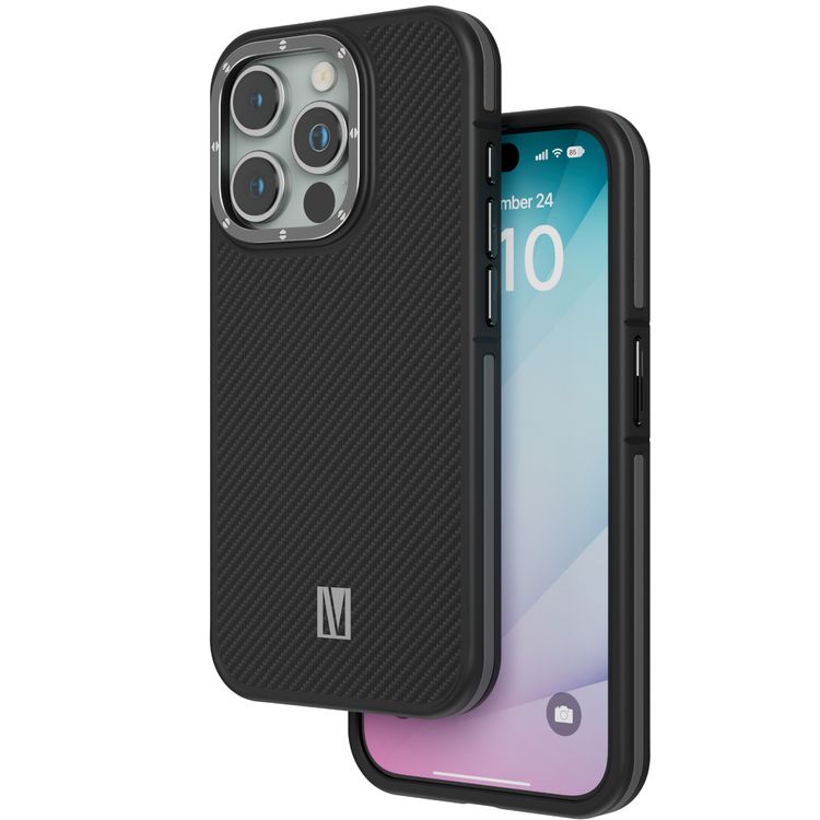 حافظة ليفيلو أوكس كربون لهاتف آيفون 15 برو ماكس، زوايا معززة مع حماية من الهواء، متوافقة مع ماج سيف، حواف مقاومة للصدمات، مقاومة للخدش 3H، إطار مرتفع - رمادي