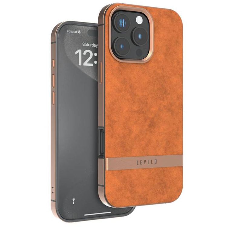 كفر ليفيليو بيلي الجلدي لجهاز آيفون 16 برو ماكس مع مصد من الألومنيوم وزوايا مقاومة للصدمات وتوافق مع ماج سيف وخفيفة الوزن ونحيفة - بني