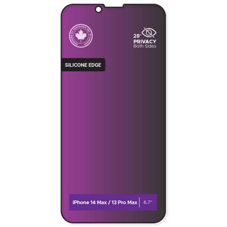 واقي شاشة مقوى بحواف من السيليكون باللون الأسود من Levelo Privacy، متوافق مع iPhone 14 Plus / 13 Pro Max - أسود